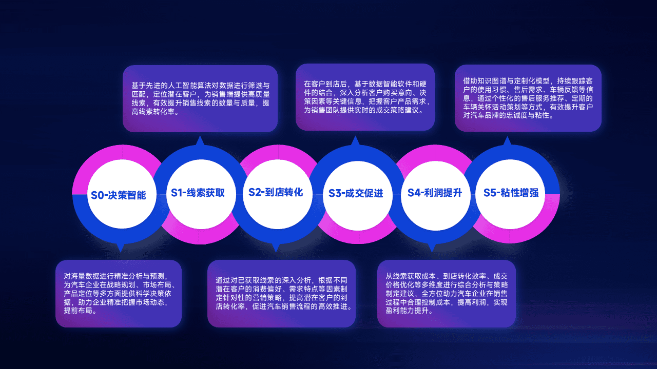 通过拓宽潜在客户来源、、优化线索分配并提高到店转化率,,以增强销售效率。。。同时,,利用线索数据不断优化分析模型,,有效提升转化率,,扩大营销影响力。。。